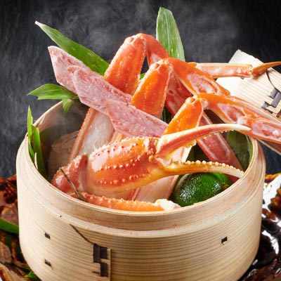 ずわい蟹の足を蒸したものを、あつあつでお召し上がりください。