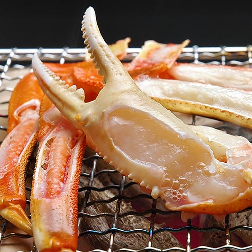 ずわい蟹の足を焼いて、焼きたてをお召し上がりください。