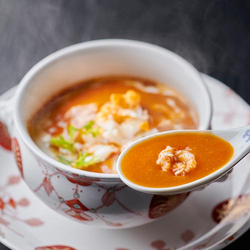 「2010年食のみやこ鳥取県」で名物料理コンテストで大賞を受賞した「モサ海老のクリームスープ」をバージョンアップさせたクリームスープです。モサ海老と蟹のこくが口の中に広がり濃厚かつクリーミーに仕上げた1品です。一度ご賞味ください。