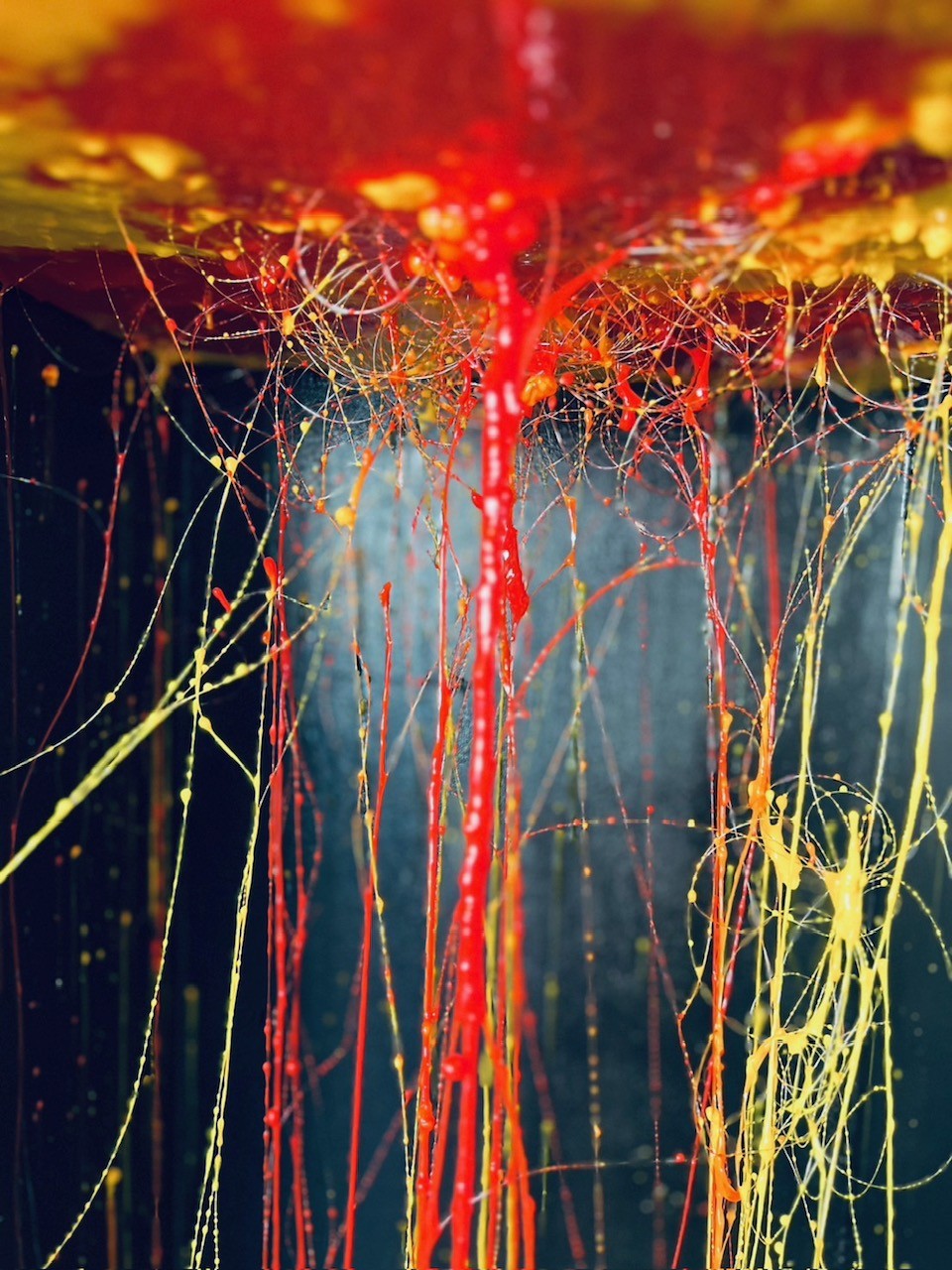 そこに色のついた素材が絡んで、垂れたり、止まったりしています。