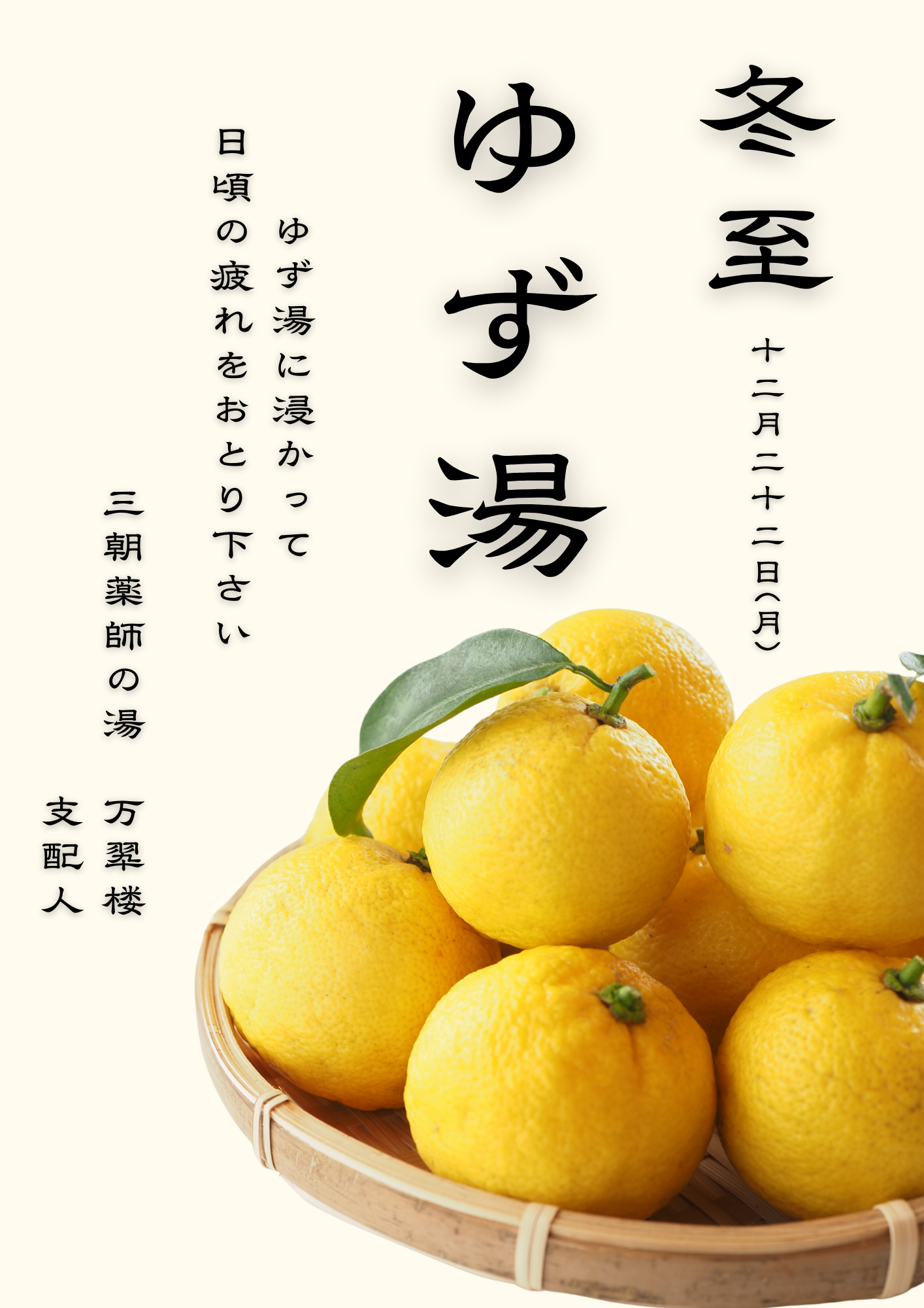 ※ゆず湯は12/22の一日限定となります。
