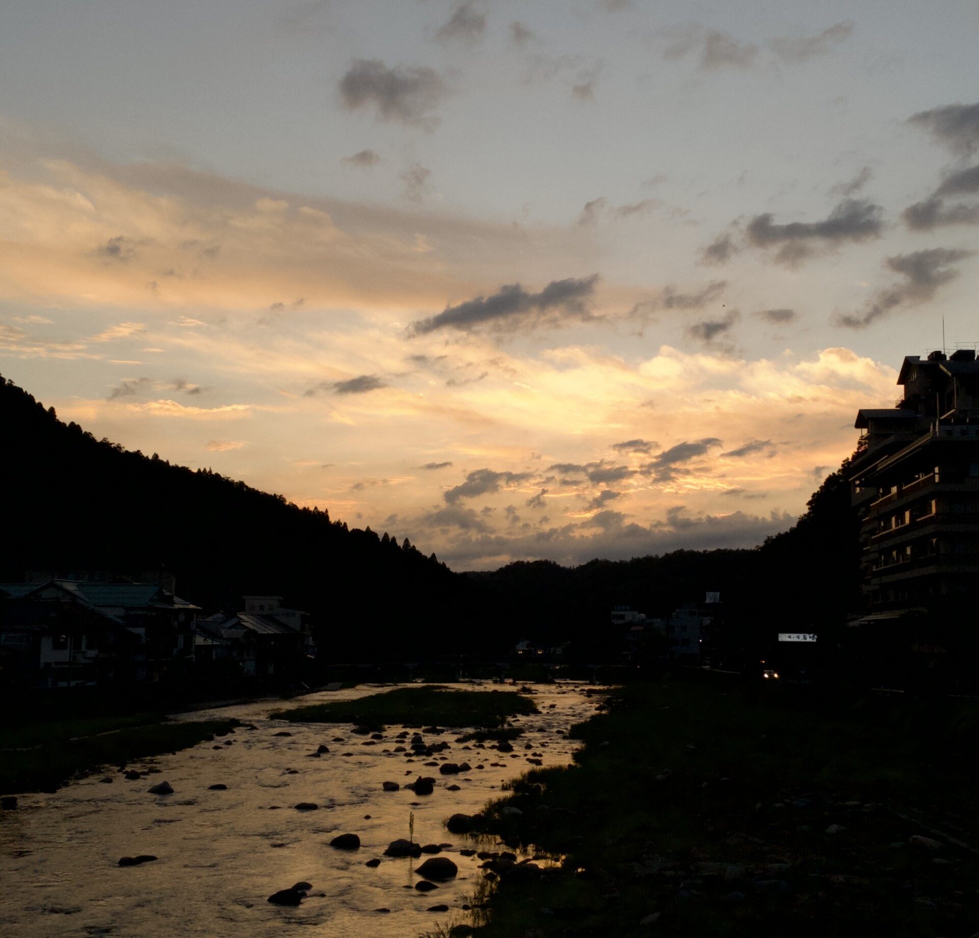 温泉街の灯りが少しずつ灯りはじめるこの時間帯は、