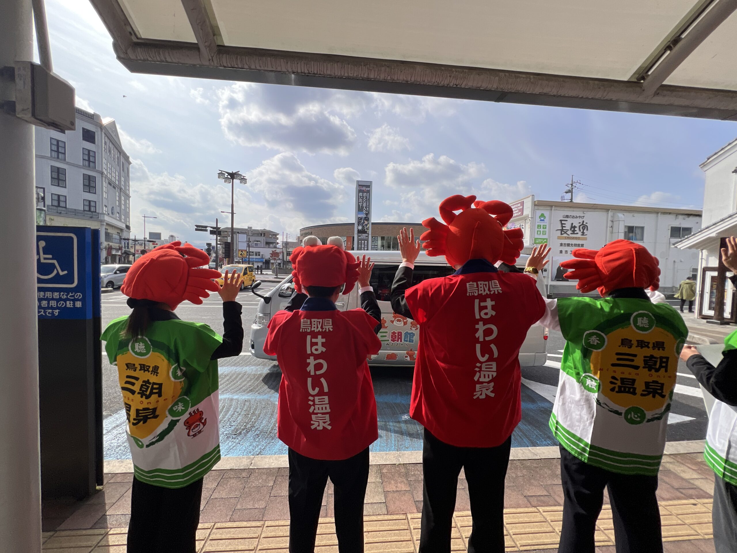 倉吉駅に集結し今年第1号のお客様をお出迎えしました🦀